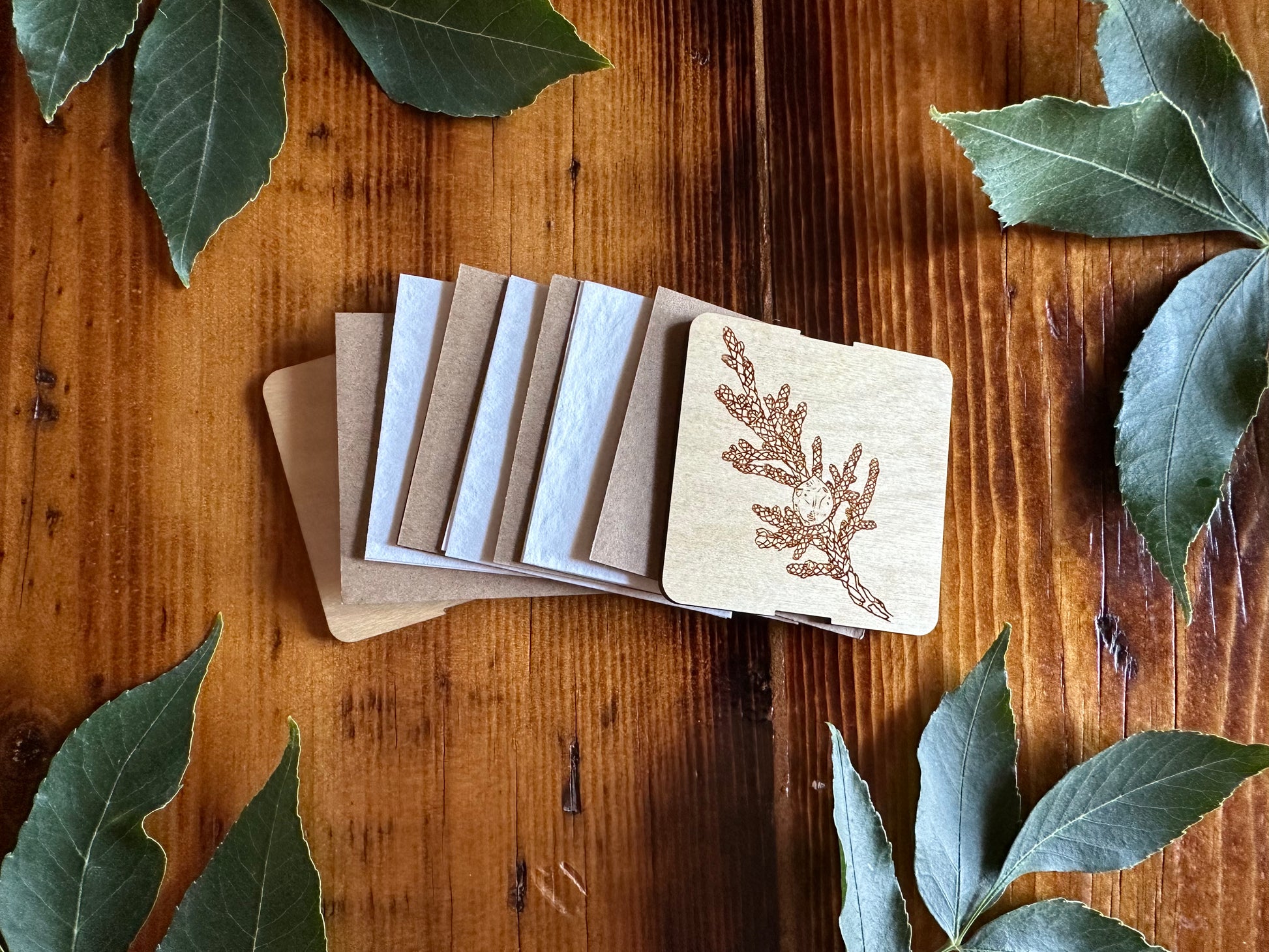 - 3mm (1/8") birch plywood front and back with juniper design