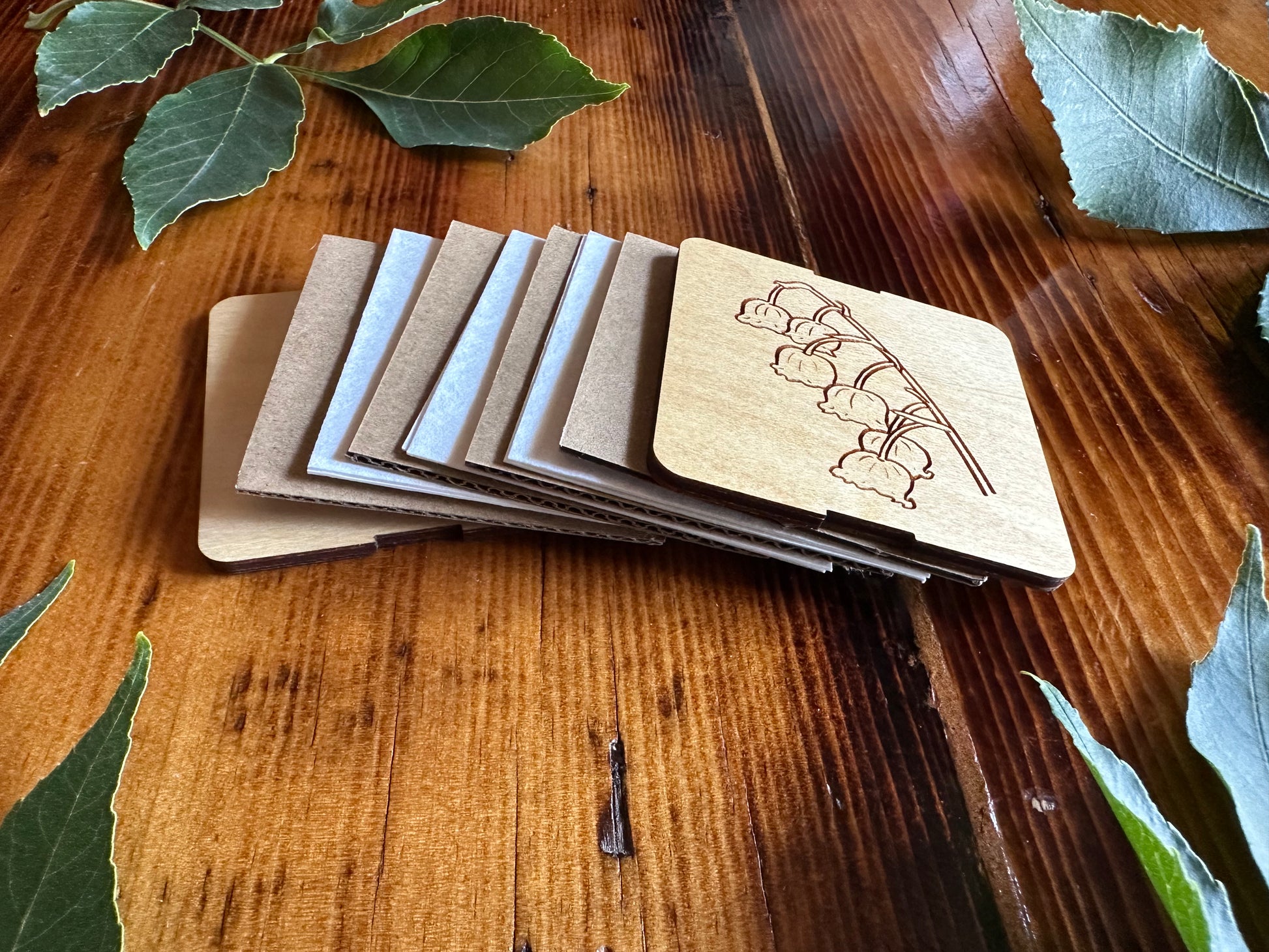 - 3mm (1/8") birch plywood front and back with lily of the valley design